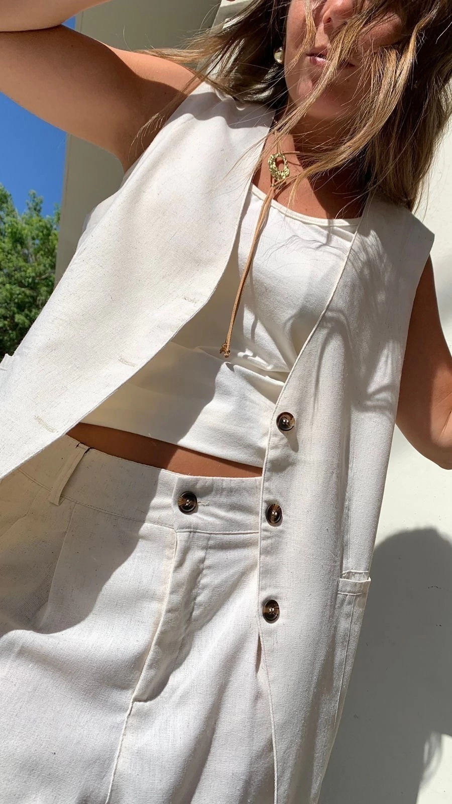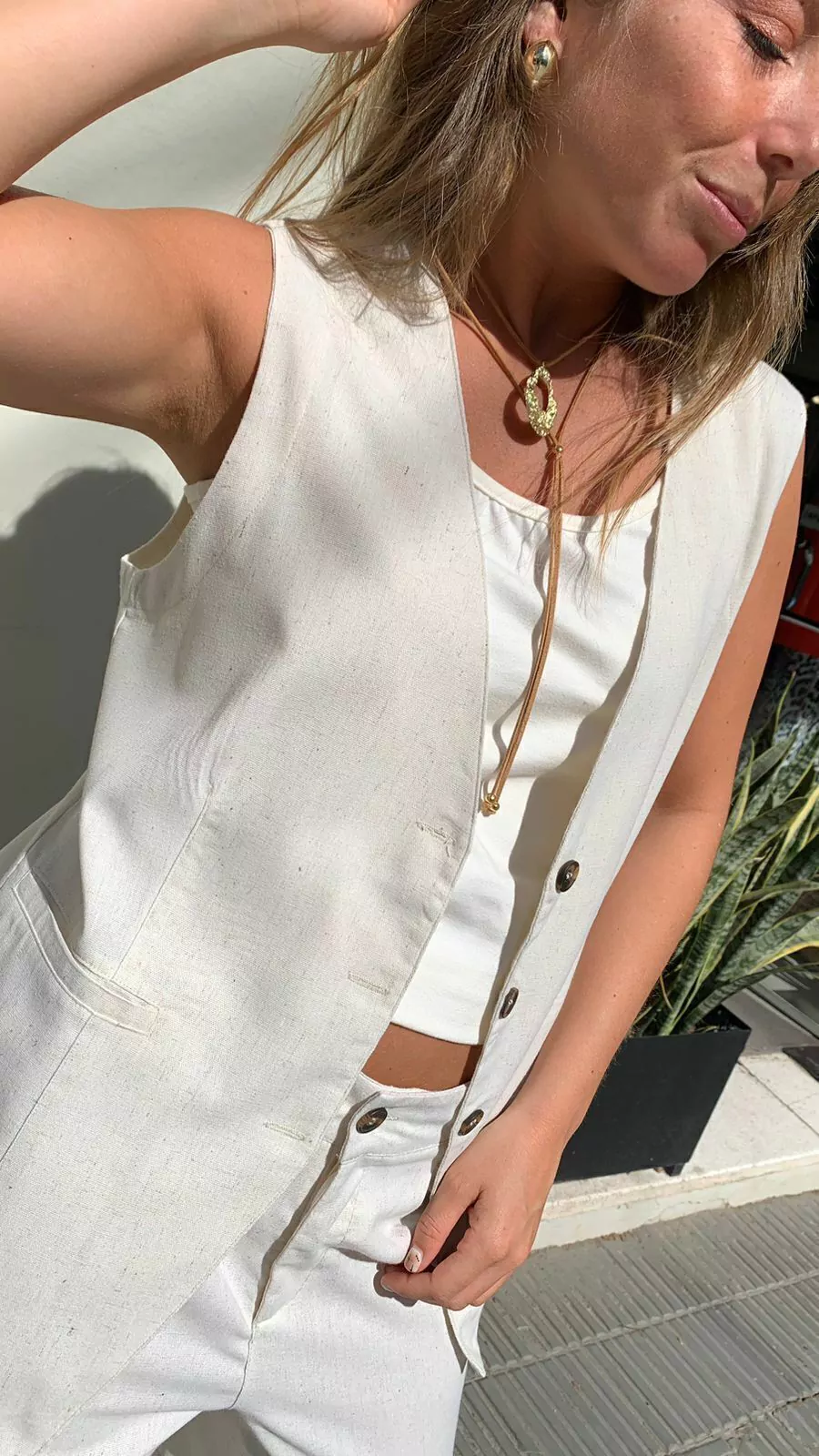 ¿Por qué elegir este chaleco? - Material de alta calidad: El lino es conocido por su frescura y comodidad, ideal para climas cálidos. - Versatilidad: Puedes combinarlo fácilmente con camisetas, blusas o incluso sobre un vestido, adaptándose a diferentes estilos. - Estilo atemporal: Su diseño clásico garantiza que siempre estarás a la moda, sin importar la temporada.