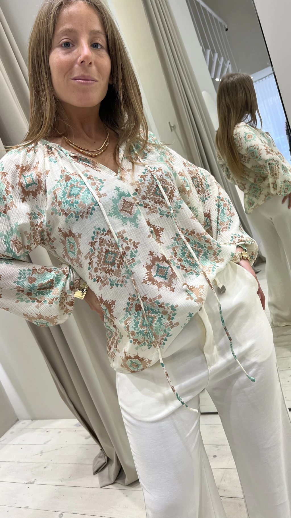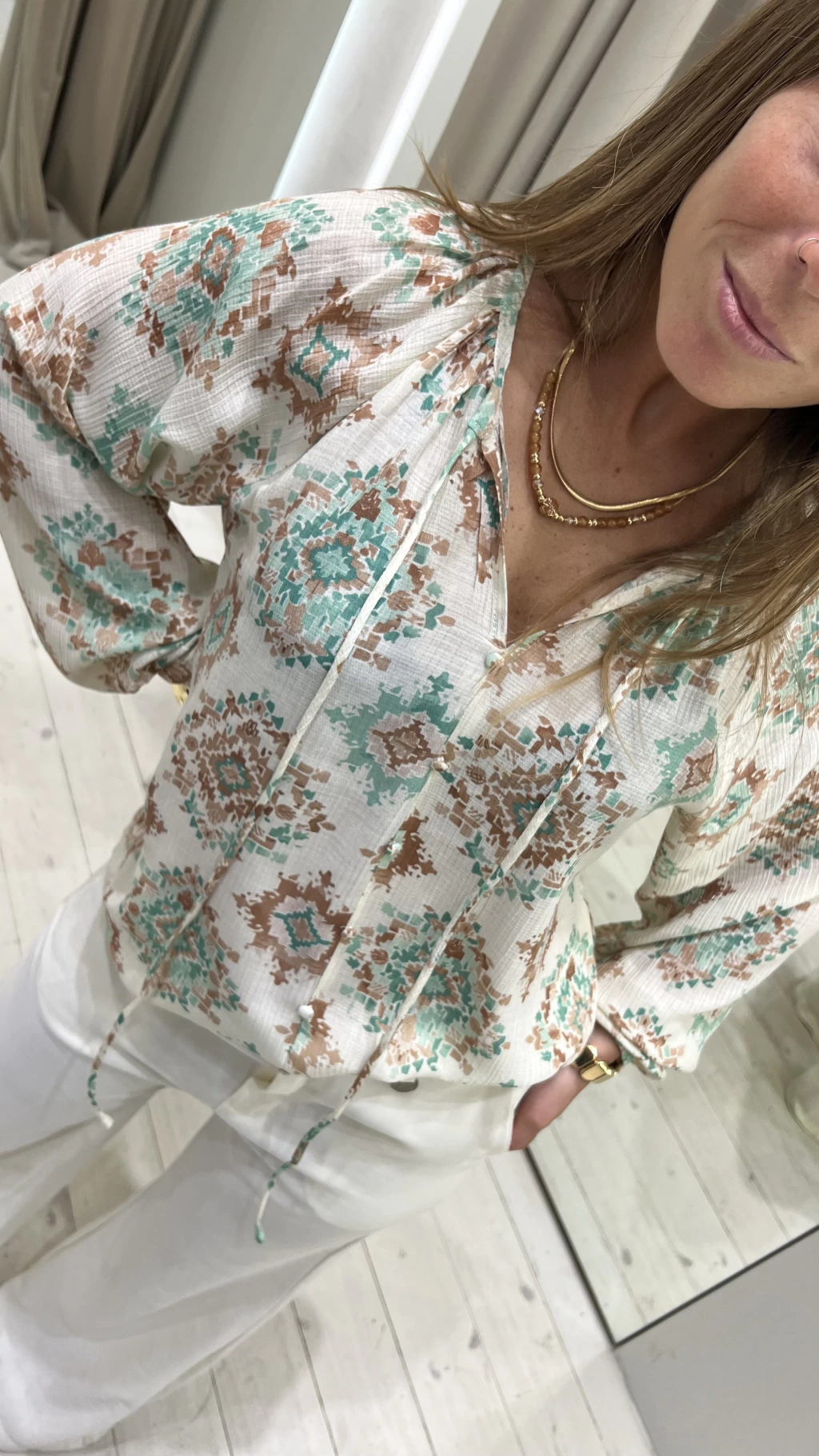 Te presentamos la Blusa Lou 7-104, una camisola estampada que destaca por sus delicados frunces en el cuello, aportando un toque femenino y sofisticado a tu look. Confeccionada en una tela suave y cómoda, es perfecta para combinar tanto en ocasiones casuales como formales.