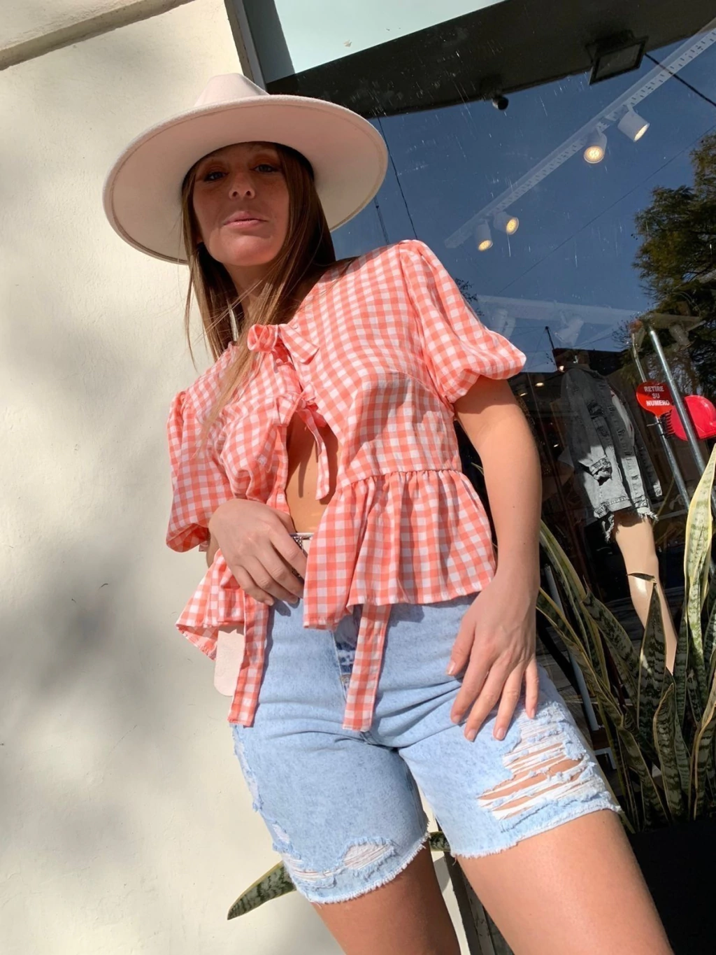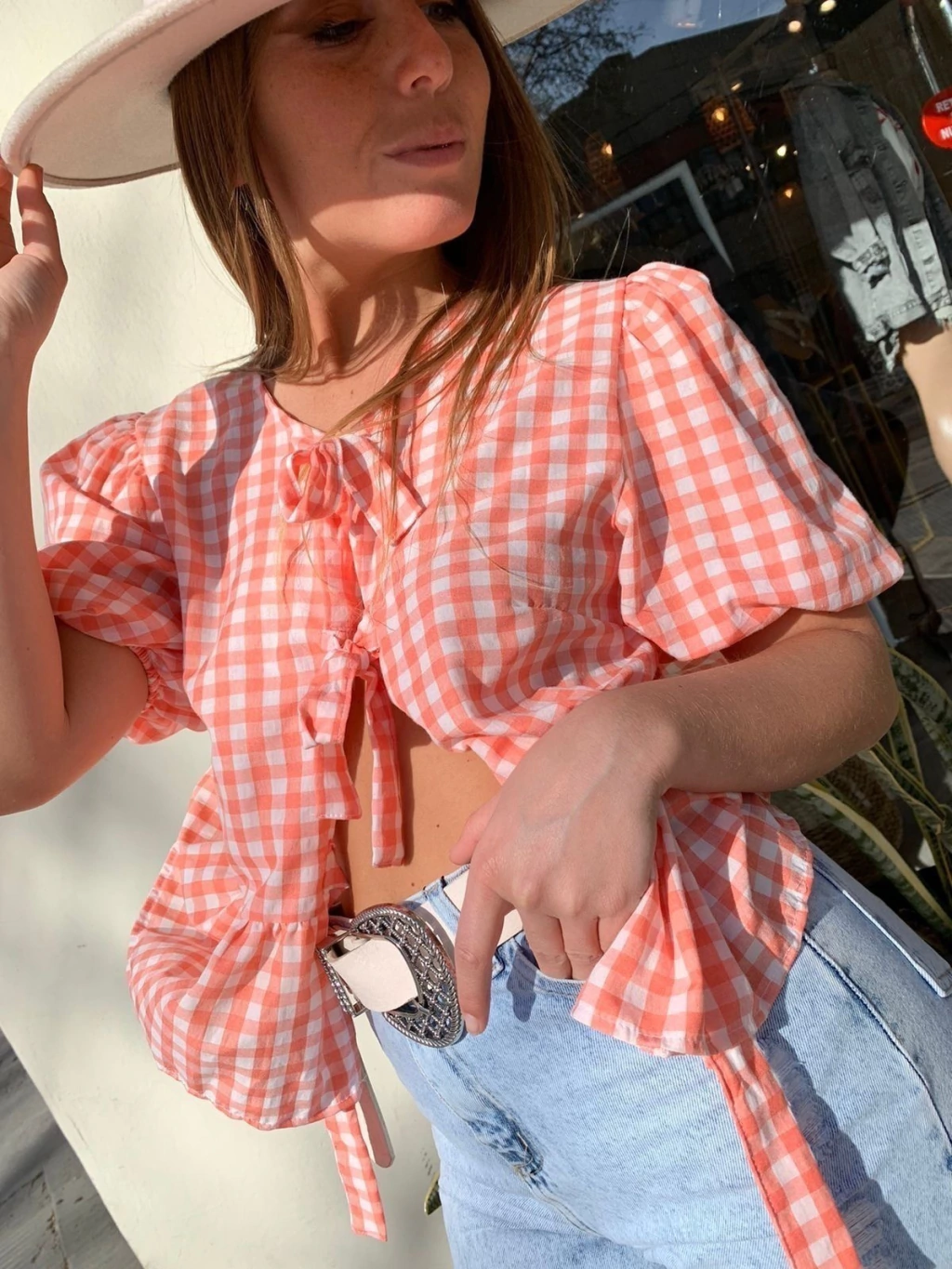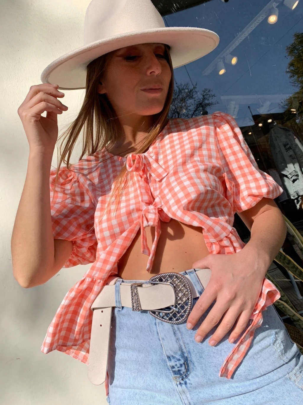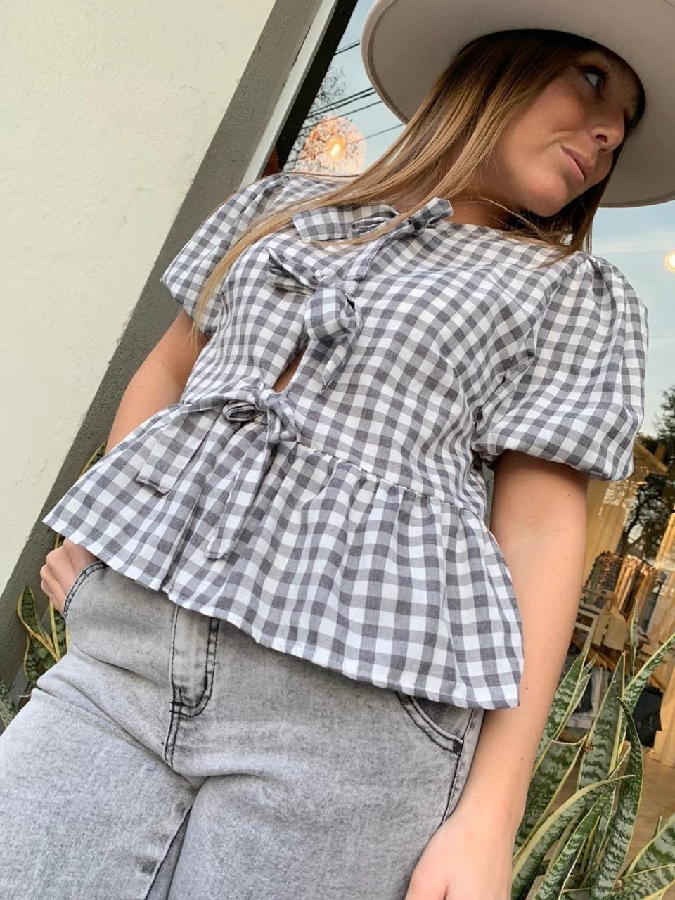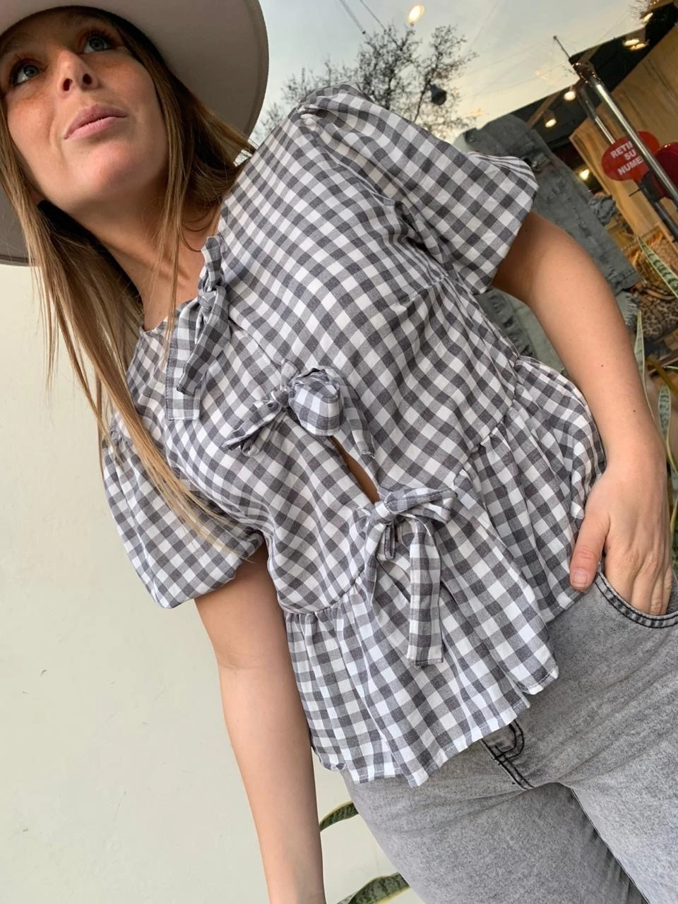 Descubre la Blusa Chignon Cuadrille, una prenda que combina la elegancia y la comodidad en un diseño único. Confeccionada en un atractivo tejido de cuadrille, esta blusa se ata adelante, permitiéndote ajustar el fit a tu gusto.