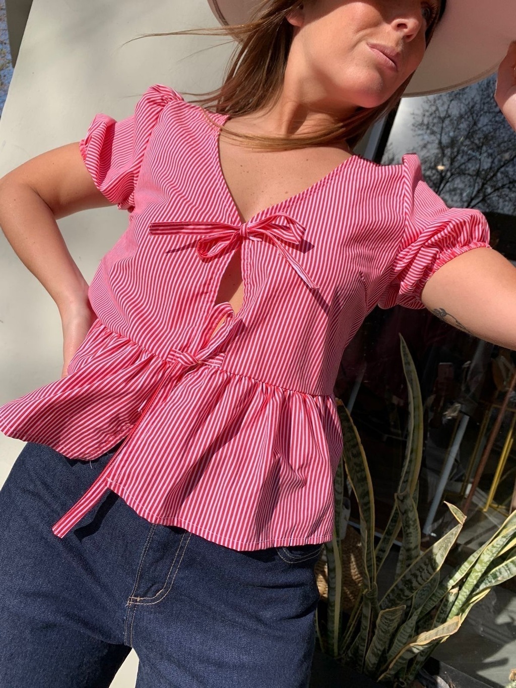 Descubre la Blusa Rishka Rayada con Nudo, una prenda que combina estilo y frescura para tu guardarropa. Con un diseño único que se ata adelante, esta blusa es perfecta para aquellos días en los que deseas lucir elegante sin sacrificar la comodidad.