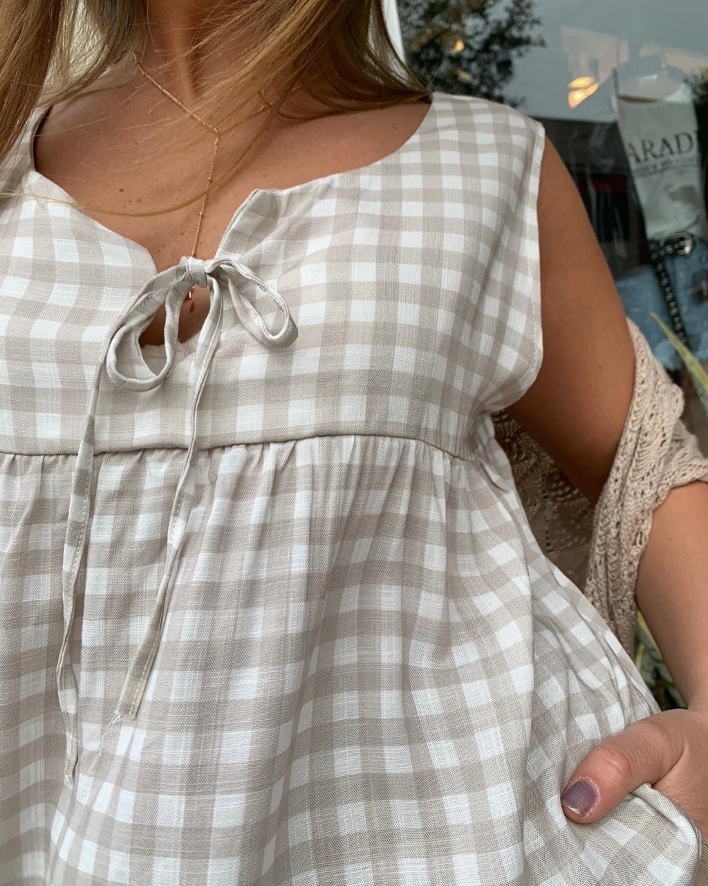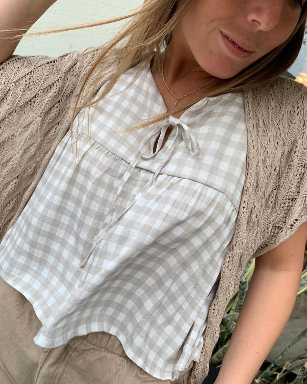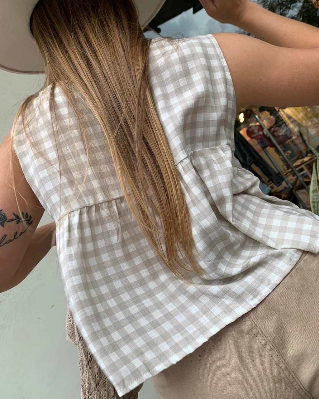 No te pierdas la oportunidad de hacerte con esta pieza imprescindible para tu guardarropa. ¡Atrévete a brillar con la blusa Vichy cuadrille!
