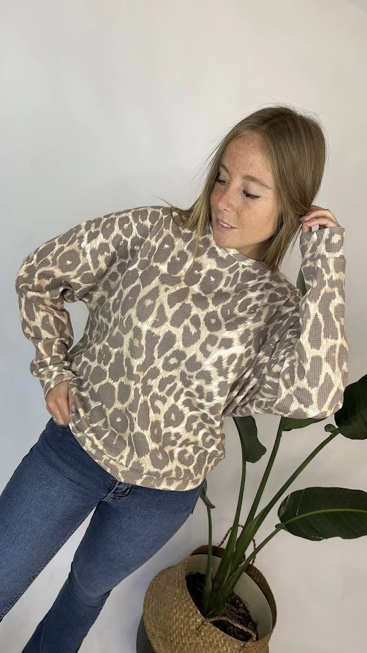 Descubre el Buzo de Waffle Print Nina Leochill, una prenda de corte oversize que combina comodidad y estilo.