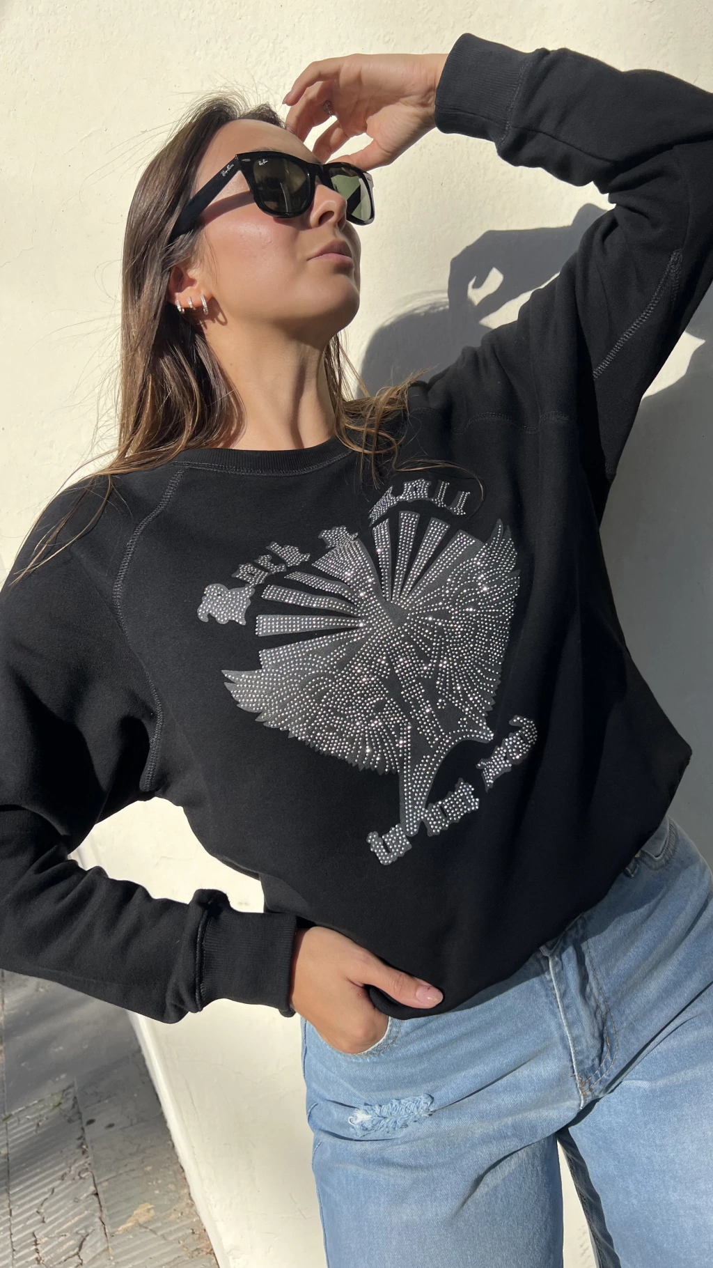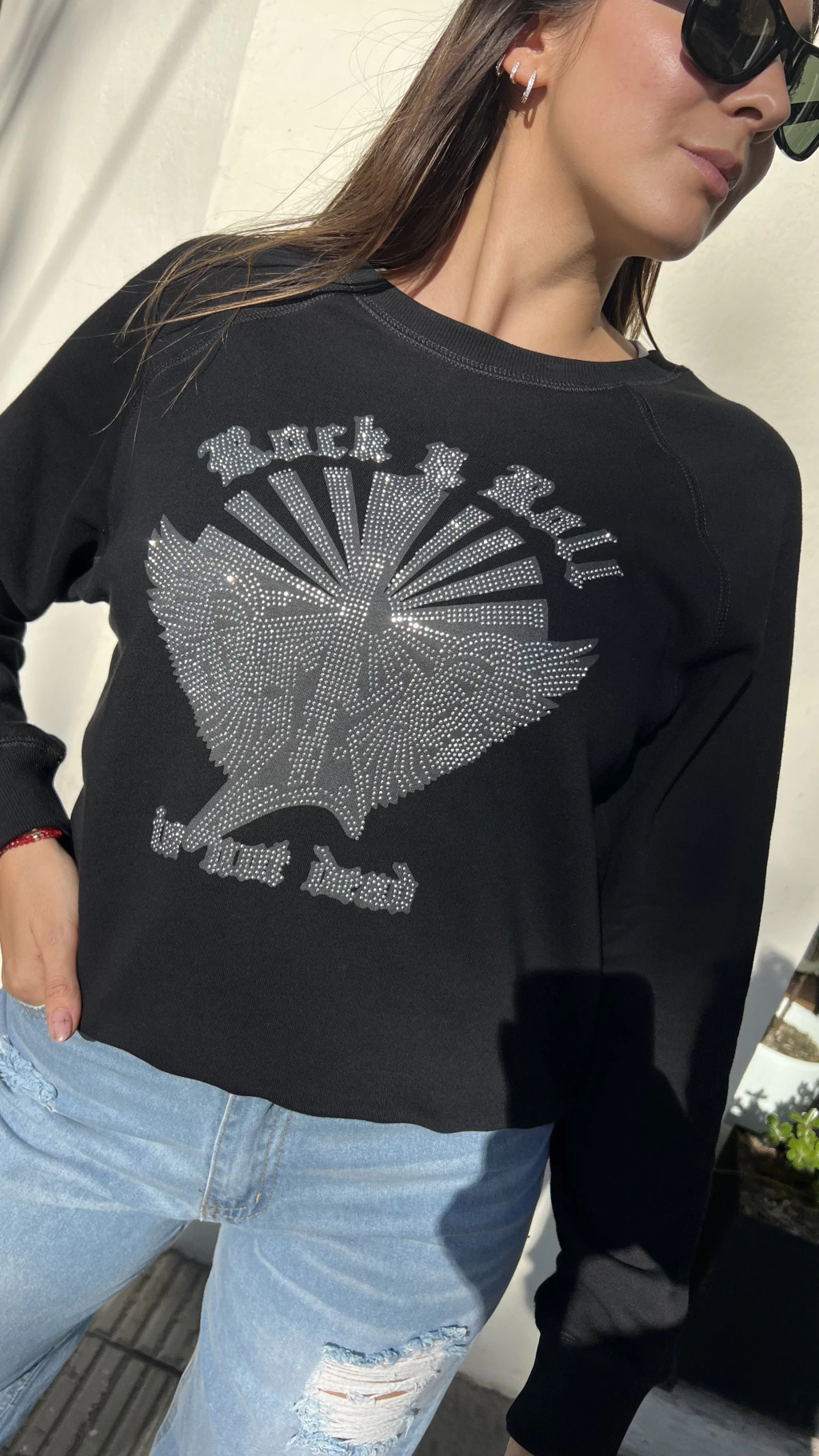 Descubrí el Buzo Sepia, una prenda rústica con calce básico y escote a la base, perfecta para un look casual y cómodo. Destaca el detalle de estampa y tachitas en el delantero, que le aportan un toque único y moderno.
