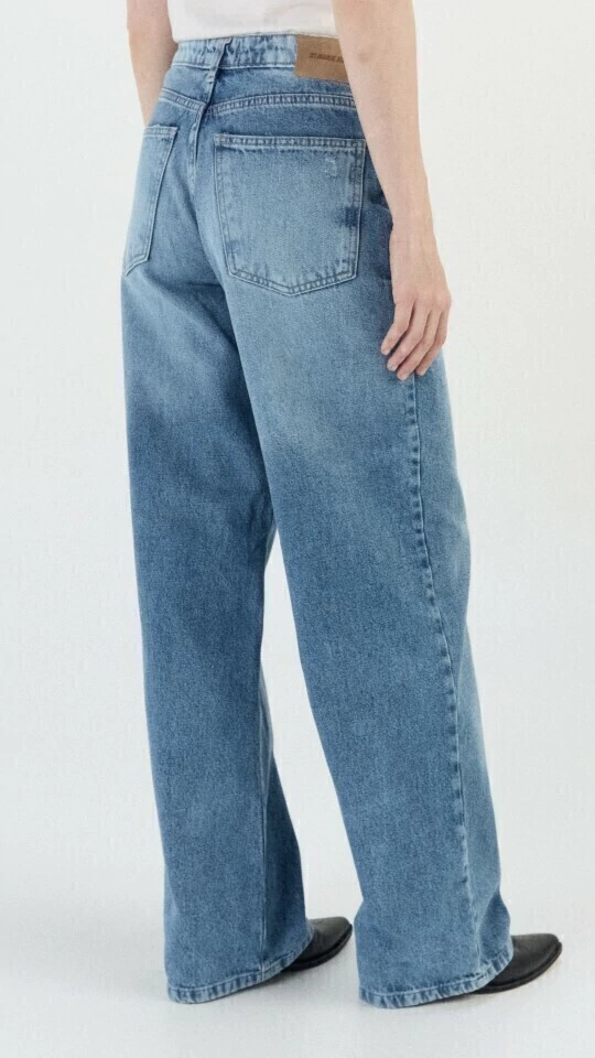 Descubre el Jean Calce Wide Tiro Alto Rígido 5 Bolsillos