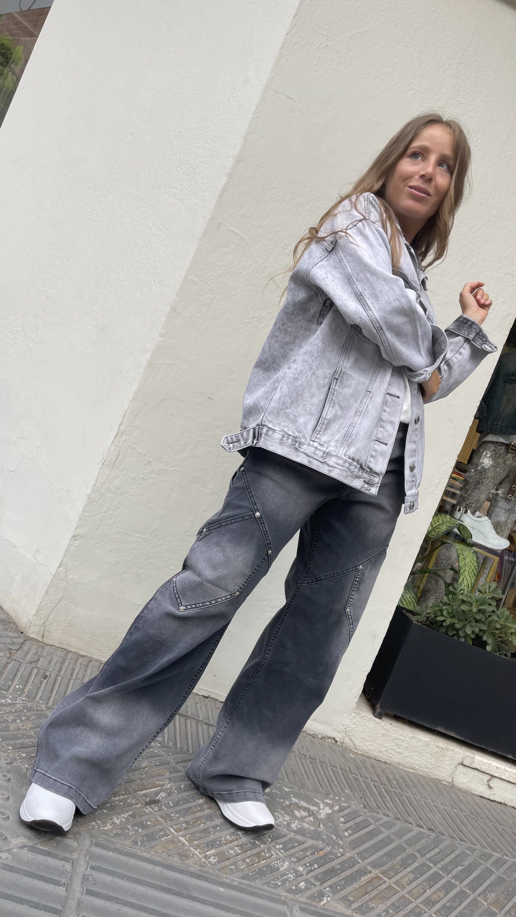 Su color gris versátil permite combinarlo fácilmente con diversas prendas, ya sea para un look casual o más elaborado. Ideal para el día a día, este jean cargo se convertirá en tu favorito.