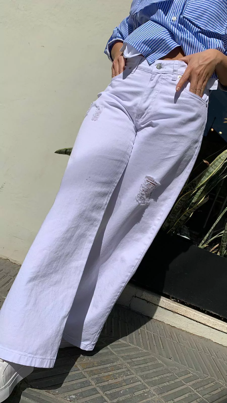 Te presentamos nuestros jean straight cereus, la prenda más trendy de la temporada. Este básico imprescindible combina la frescura del blanco con el toque canchero de las roturas, lo que lo convierte en un must-have en tu guardarropa.
