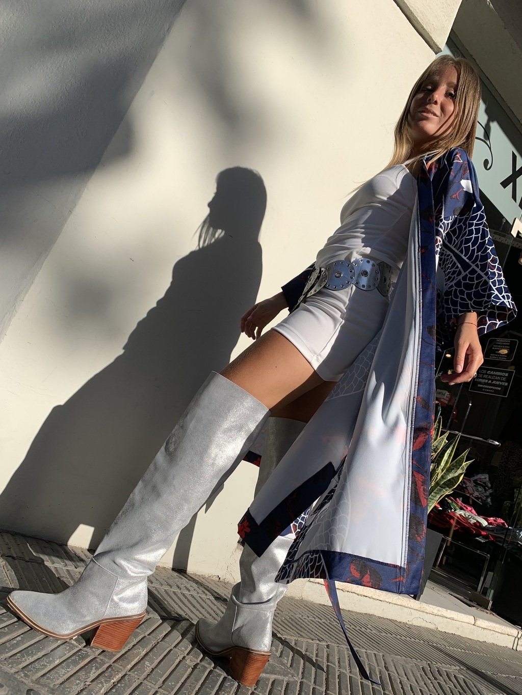 Su diseño fluido y abierto permite una gran versatilidad: ideal para usarlo sobre una blusa o un vestido, añadiendo un aire sofisticado a cualquier look. Además, su estampado atractivo lo convierte en la elección perfecta para destacar en cualquier ocasión.