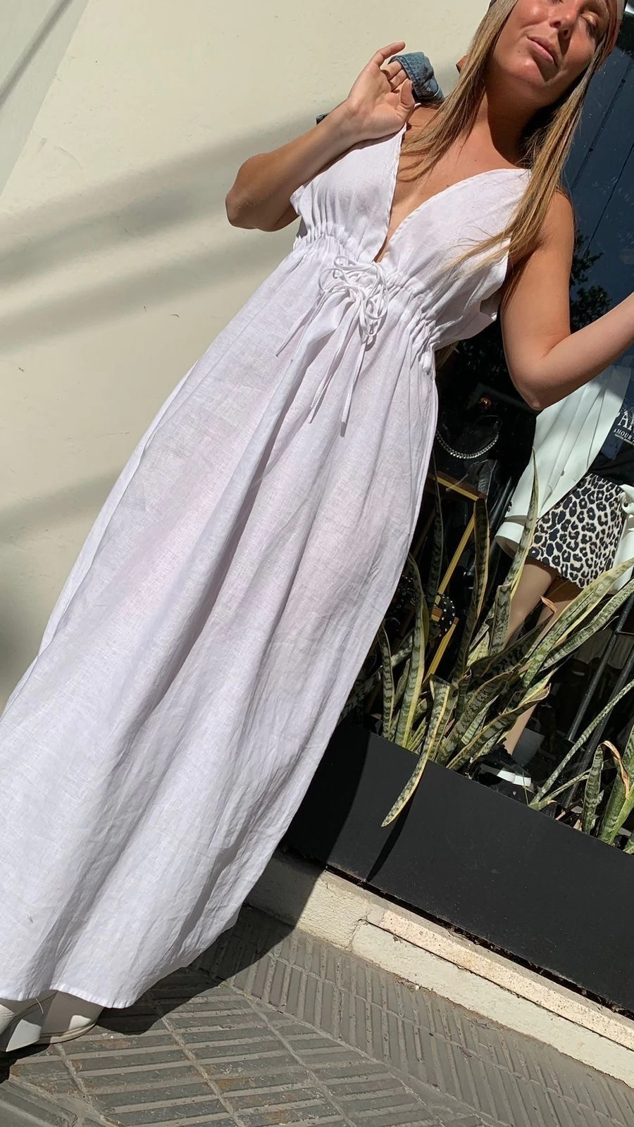 Te presentamos el Maxivestido Ravena, un vestido súper liviano y fresco, confeccionado en tela de lino livianita. Su diseño amplio y suelto lo convierte en la opción ideal para un look playero y glam.