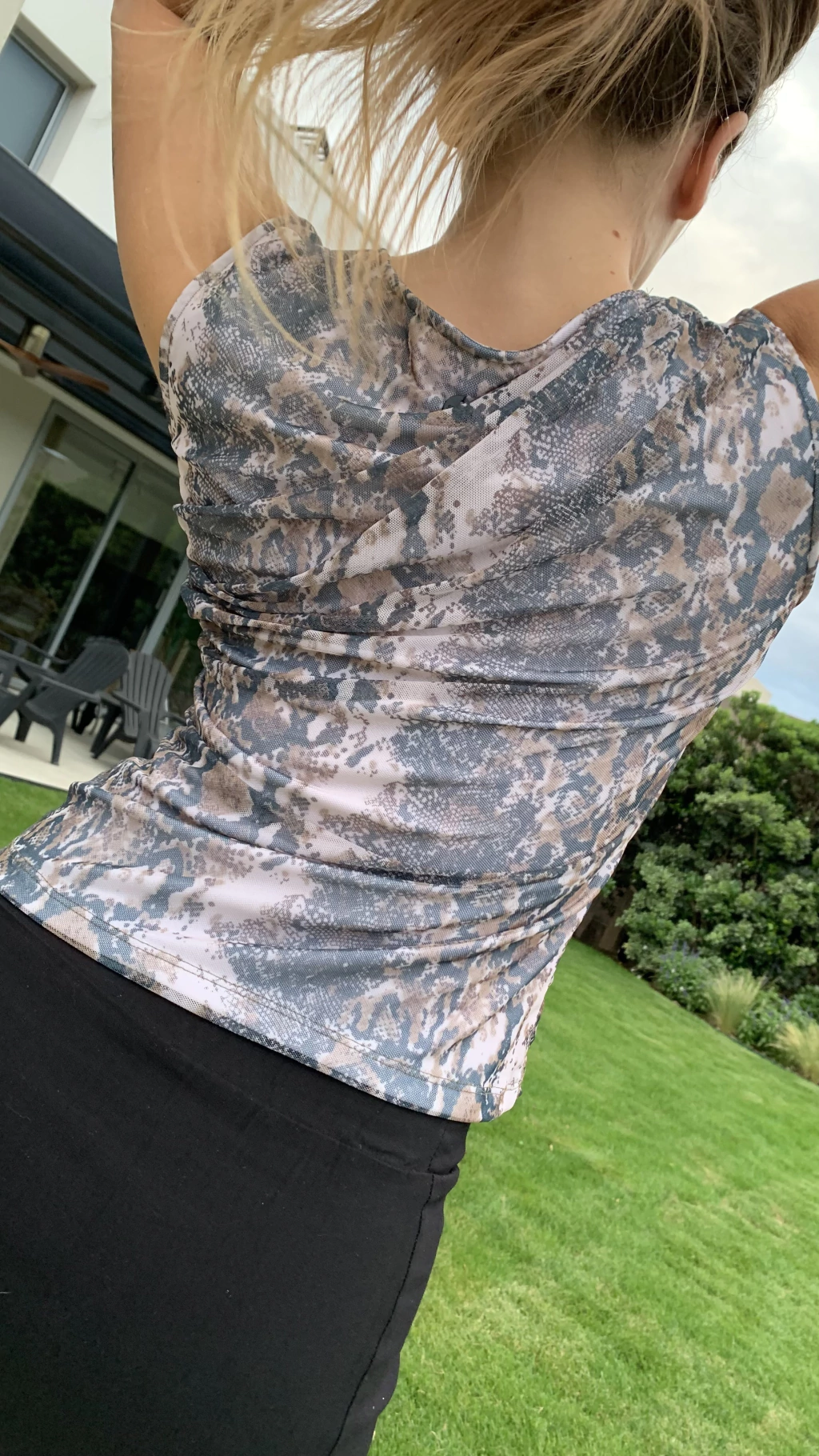 Presentamos la Musculosa Alisa Snake, una prenda que se adapta a cada momento del día, desde un look casual para el día hasta un estilo más sofisticado para la noche. Su diseño cuenta con elásticos a los costados, que brindan una comodidad excepcional y un calce perfecto.
