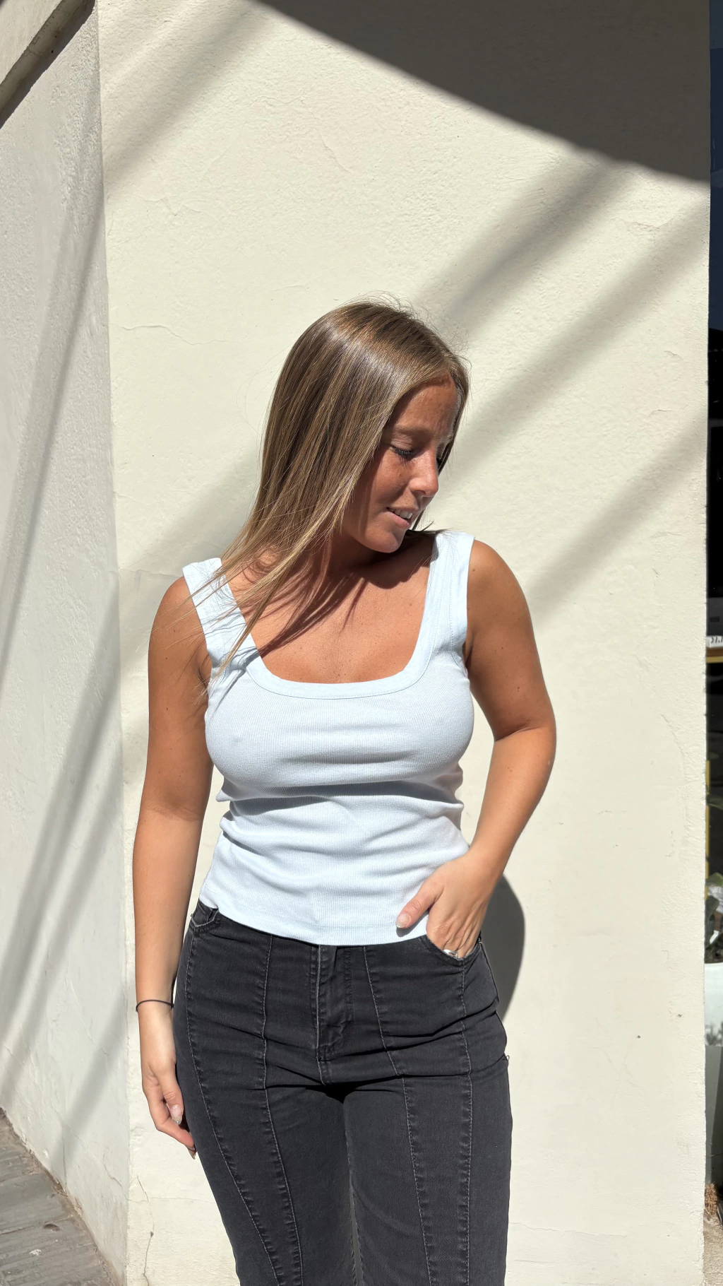 Descubrí la Musculosa Gabbie, confeccionada en morley suave que ofrece comodidad y estilo. Su escote cuadrado realza la silueta con un toque moderno y femenino.
