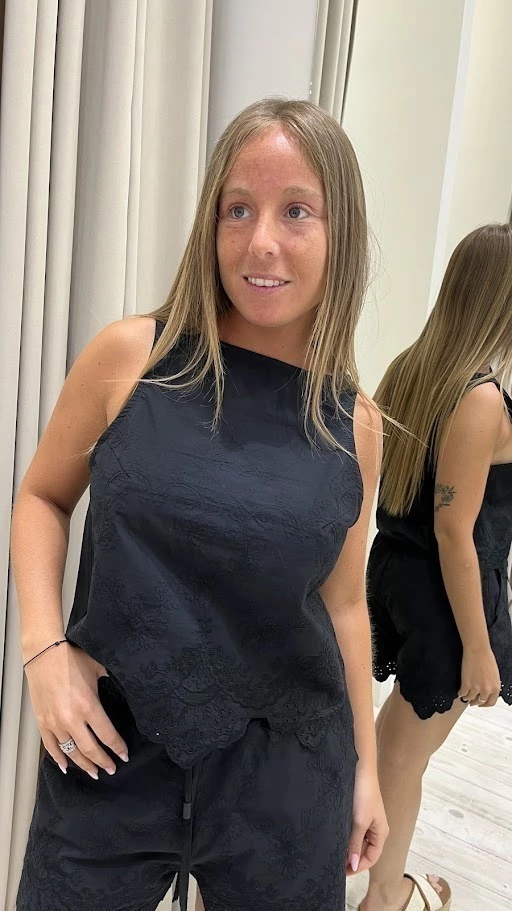 Descubrí la Musculosa Lagoon Broderie, una prenda elegante y fresca ideal para el verano. Con escote clásico y calce entallado, destaca por la guarda en el ruedo delantero y espalda, que le aporta un detalle único y delicado. Está confeccionada 100% en algodón, garantizando comodidad y transpirabilidad. Además, lleva una chapita metálica con la identificación de la marca, que suma un toque distintivo. ¡Sumá estilo y frescura a tu look con esta musculosa exclusiva!
