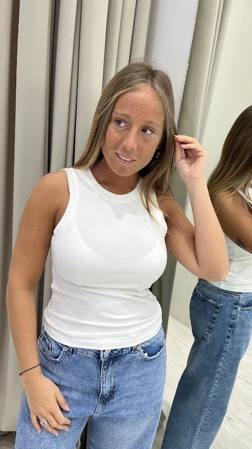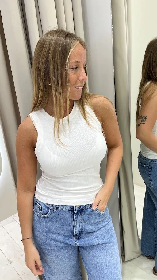 Descubrí la Musculosa Lolu, confeccionada en una suave mezcla de 93% Rayon y 7% Spandex que asegura comodidad y elasticidad. Su diseño de cuello alto y tirillas anchas en las sisas y el cuello aportan un estilo moderno y elegante.