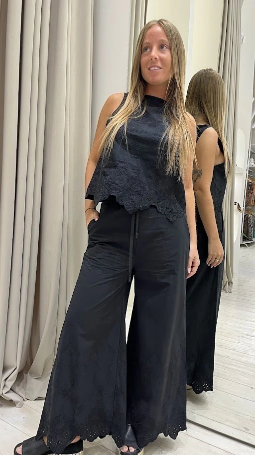 Descubrí el Pantalón Marnie, una prenda de corte clásico que combina estilo y comodidad. Con cintura elástica y piola con terminales identificativos de la marca, ofrece un ajuste perfecto. Está confeccionado en 100% algodón para máxima frescura y suavidad. Cuenta con prácticos bolsillos laterales y una guarda distintiva en el ruedo que realza su diseño. Ideal para looks casuales y elegantes.