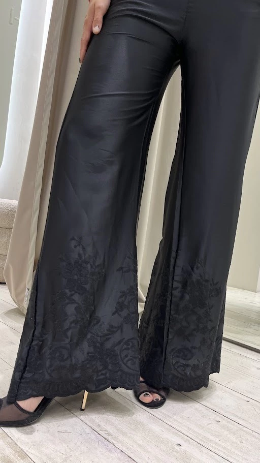 Descubrí el Pantalón Merina, una prenda elegante confeccionada en sedita con guarda bordada en la botamanga, que suma un detalle sofisticado a tu look. Cuenta con bolsillos delanteros y cintura con cierre de gancho sastrero invisible para un acabado impecable. Además, sus pinzas de entalle y presillas aseguran un calce perfecto. Ideal para combinar con el Top Milania y lograr un conjunto único y distinguido. ¡Sumá estilo y comodidad a tu guardarropa con este pantalón exclusivo!