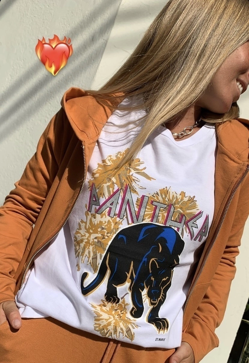 Te presentamos la Remera Demure, una prenda clásica e indispensable para tu guardarropa. Destaca por su icónica estampa de tigre, símbolo característico de St. Marie, que aporta un toque audaz y distintivo a tu look.