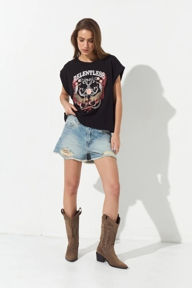 La Remera Volcanic es una prenda de jersey 100% algodón, perfecta para quienes buscan comodidad y estilo casual. Su escote a la base y hombros caídos con puños de manga rebatidos ofrecen un look relajado y moderno. Cuenta con una estampa central exclusiva y una identificación de marca en el escote de la espalda que la hacen única.