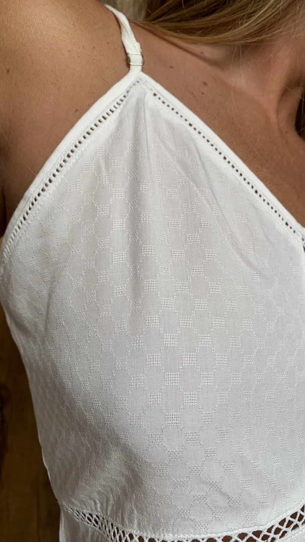 Te presentamos el Top Pearce, un top de día que se convertirá en tu prenda favorita para cualquier ocasión. Su diseño moderno y versátil es ideal para esos días soleados, brindándote comodidad y estilo al mismo tiempo. Top de voile con detalles de vainillas en delantero.