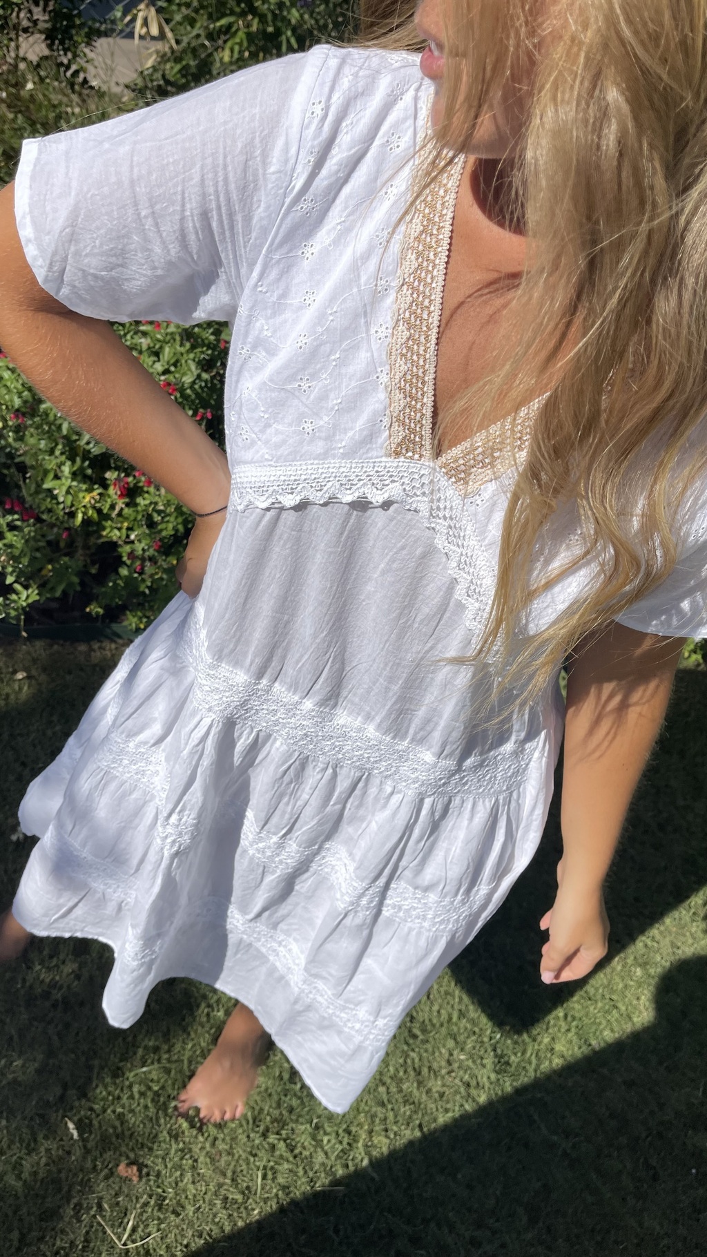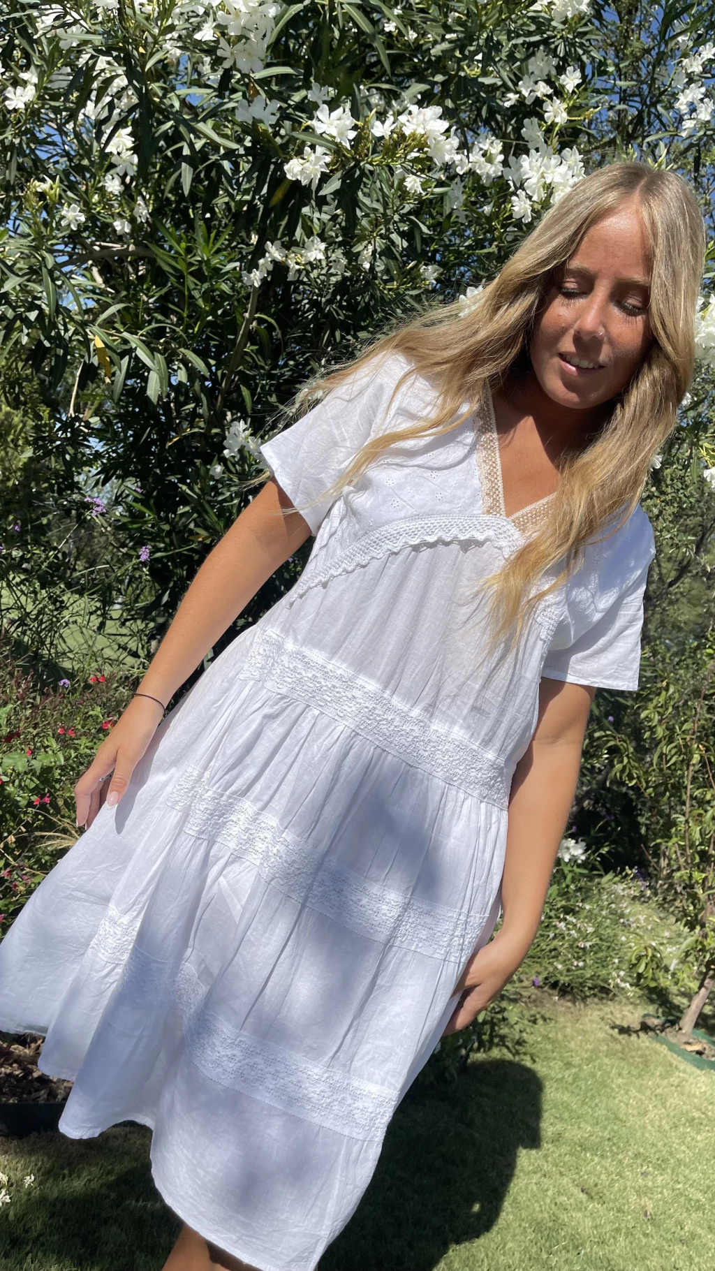 Te presentamos el Vestido con Puntilla Blanco Largo, una pieza imprescindible para quienes buscan elegancia y frescura en su guardarropa. Este vestido es ideal para diversas ocasiones, desde un almuerzo con amigas hasta una ceremonia especial.